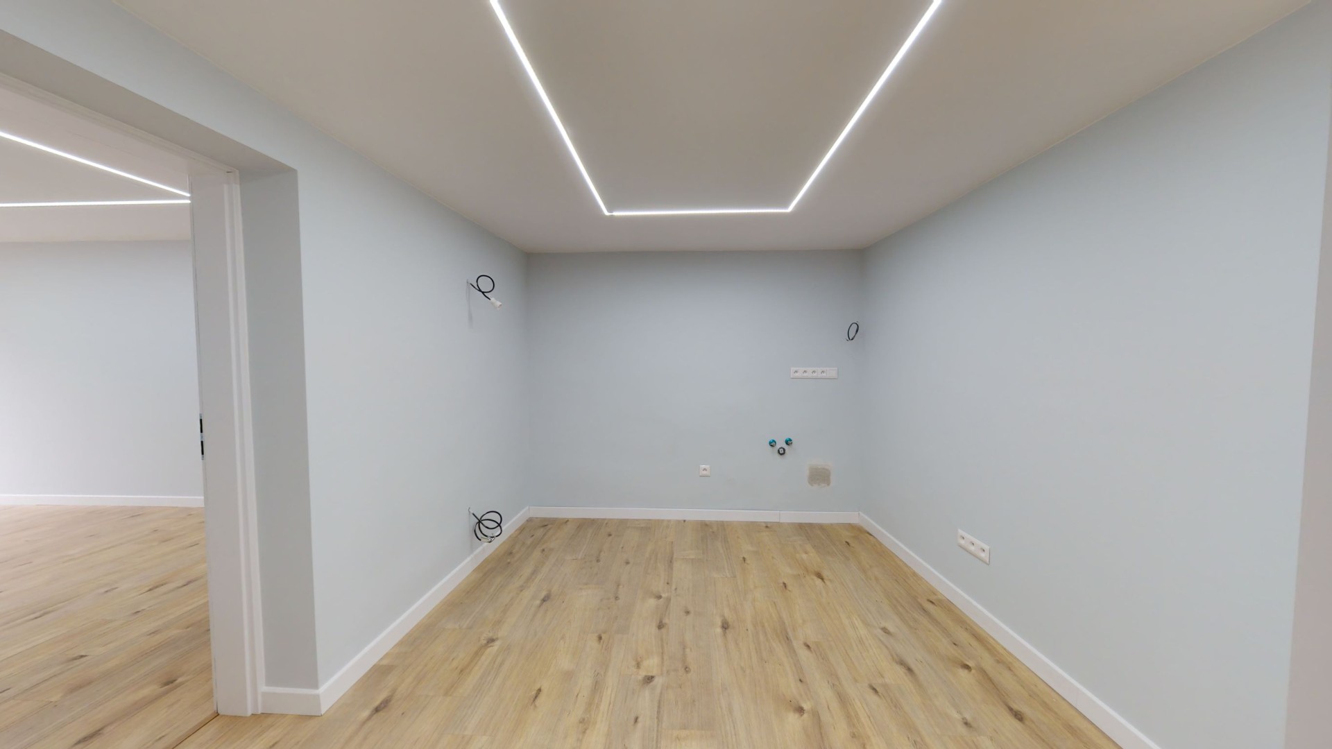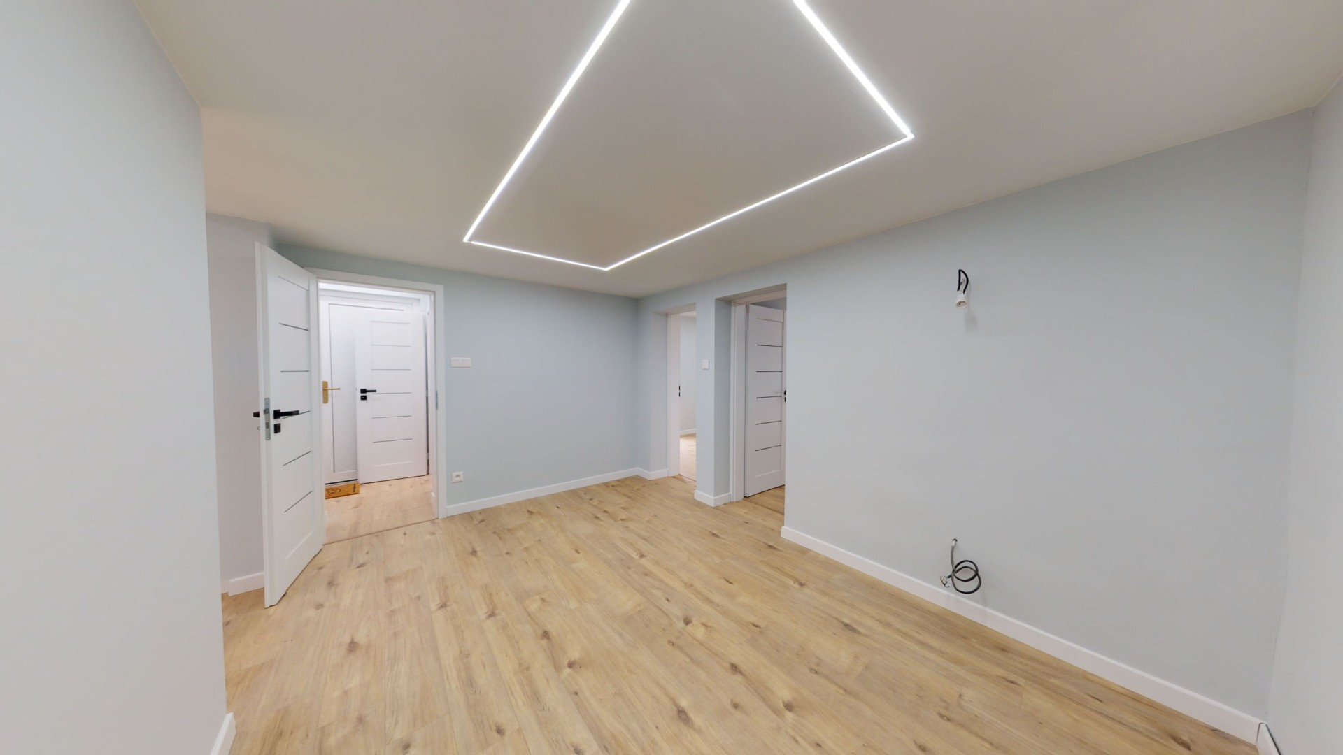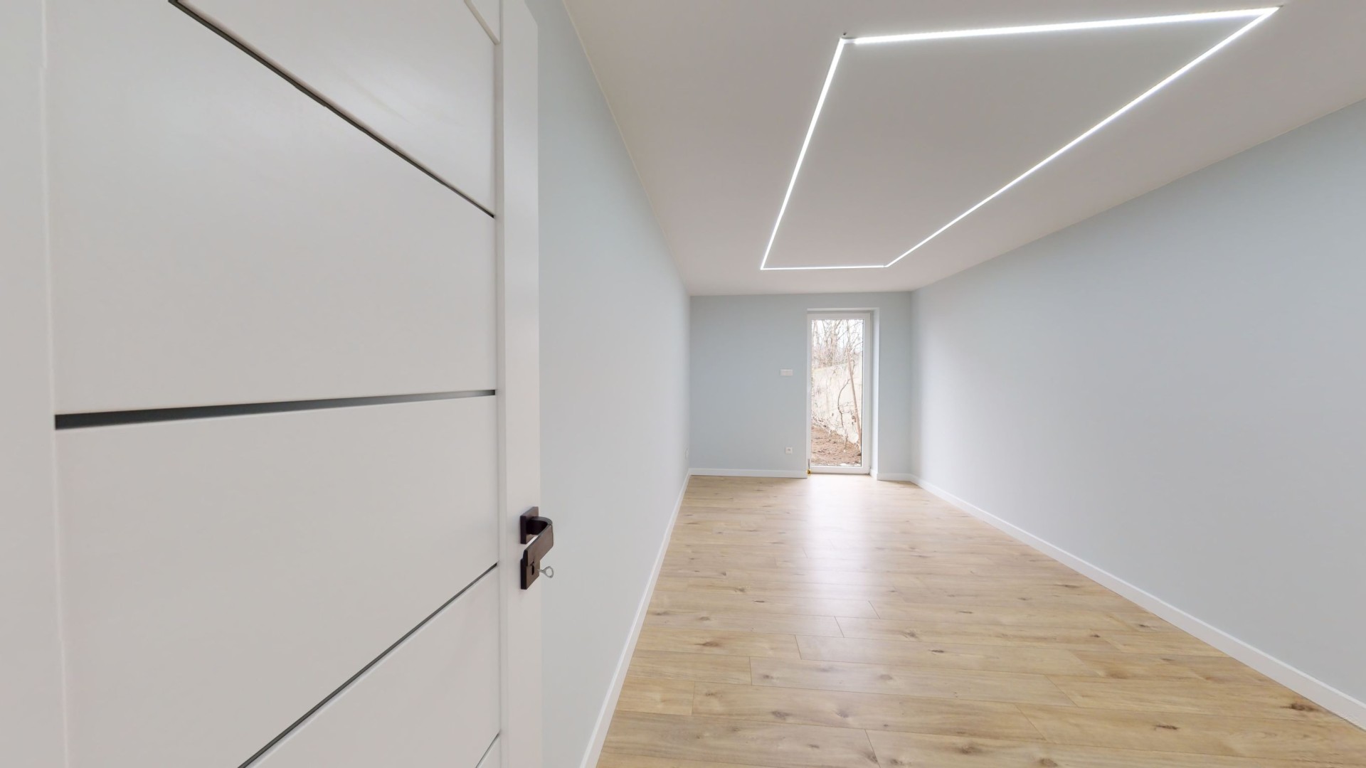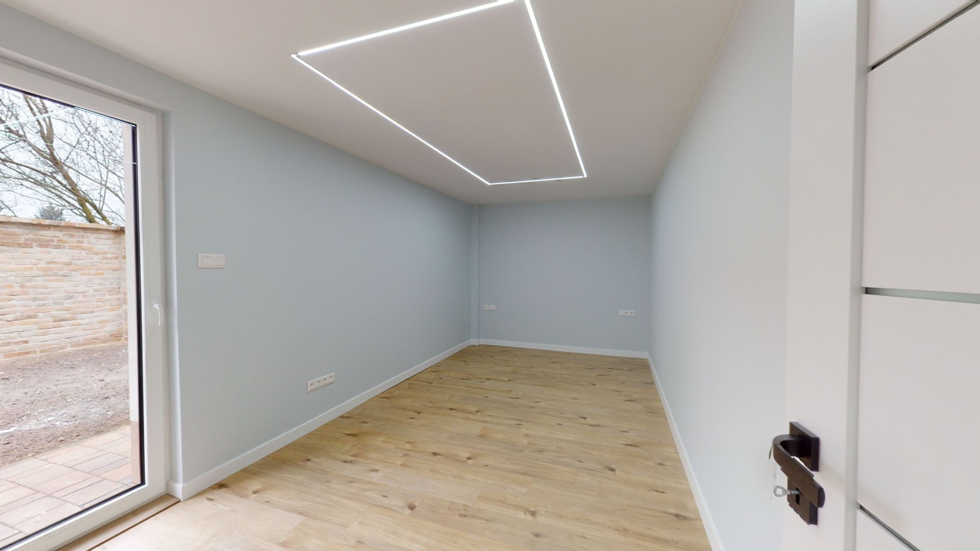 Rodinný dom s celkovou úžitkovou plochou 80m2 dispozične pozostáva zo vstupnej chodby, z ktorej na pravo sa presunieme do technickej miestnosti spolu s toaletou. V technickej miestnosti sa nachádza elektrický bojler so zásobníkom 120l vody. Na ľavo sa dostávame do kúpeľne spolu s toaletou v ktorej boli použité kvalitné obklady, batérie a doplnky vysokej kvality v dizajnovej čiernej farby. Z chodby plynule prejdeme do priestrannej kuchyne. V kuchyni na ľavo sú vstupy do dvoch samostatných izieb. Z každej izby je vstup na dvor. Z kuchyne sa ďalej presunieme do slnečnej obývačky spolu s jedálenským kútom. V celom dome pri rekonštrukcii boli vymenené elektrické rozvody s novou prípojkou zo stĺpu, voda, podlahové kúrenie v každej izbe sa nachádza termostat na reguláciu tepla, nové omietky, maľovka, sadrokartónové stropy. V každej miestnosti je osvetlenie riešené LED svetlami, ktoré sú zapracované v sadrokartónovom strope - regulovaná kvalitná svietivosť. V celom dome boli použité kvalitné vodeodolné laminátové podlahy, lišty.Na oknách sú nainštalované vonkajšie rolety pre najvyšší komfort.