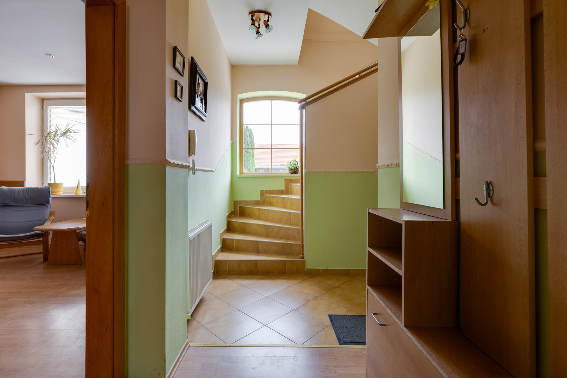 1.nadzemné podlažie - podbránie, chodba so schodiskom, kúpeľňa s WC, kuchyňa, komora a 2 x izba / kancelárie - celková plocha 72,05 m2