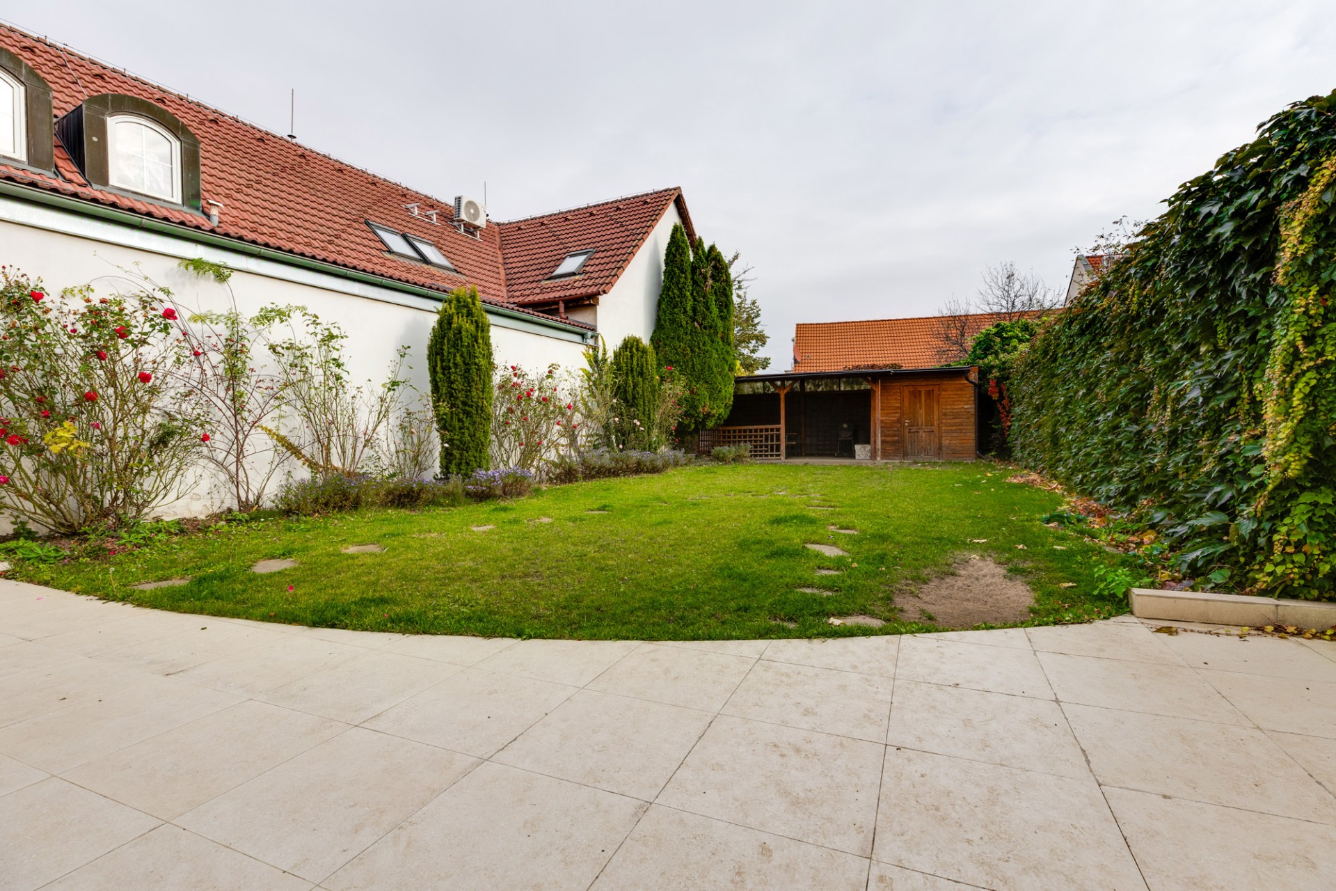 Celková výmera pozemku. je 334 m2 z čoho stavba budovy zaberá 121 m2. Za budovou sú umiestné spevnené plochy 51 m2. V zadnej časti pozemku je umiestnený altánok cca 37 m2, ktorý bol súčasťou rekonštrukcie v roku 2015. Ostatné plochy prislúchajú zeleni.