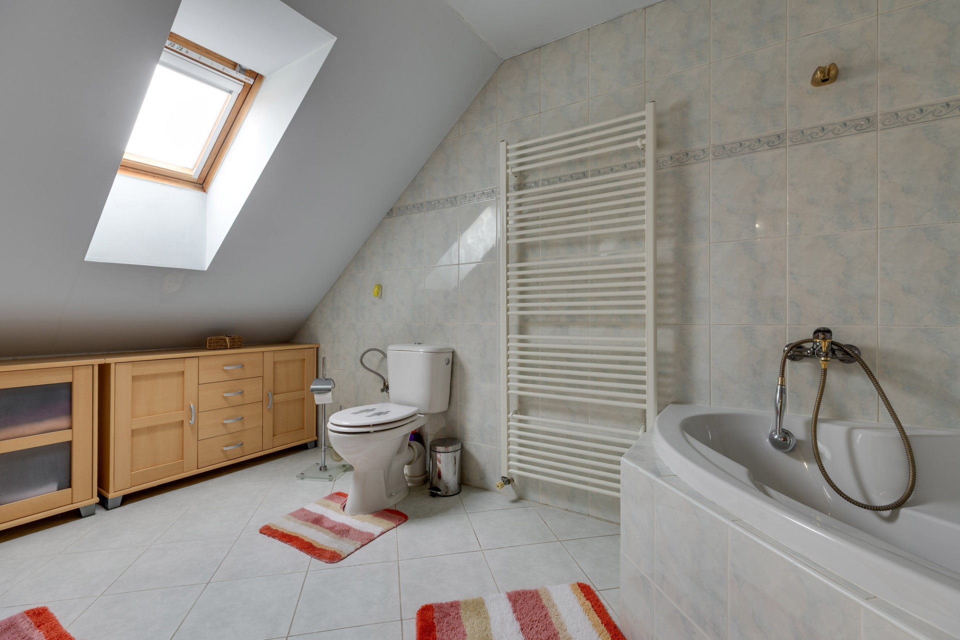 Objekt je napojený na všetky inžinierske siete - voda, kanalizácia, plyn a elektrická energia. Technicky ide o murovanú stavbu s betónovými stropmi, vykurovacie telesá sú teplovodné oceľové radiatory a zdroj tepla je plynový kotol. Nehnuteľnosť je v štandardnom prevedení - laminátové podlahy, dyhované dvere, sociálne zázemie dlažba, obklady, zariaďovacie predmety. Krov strechy je väzníkový , prekrytý pálenou betónovu škridlou doplnený o manzardku.