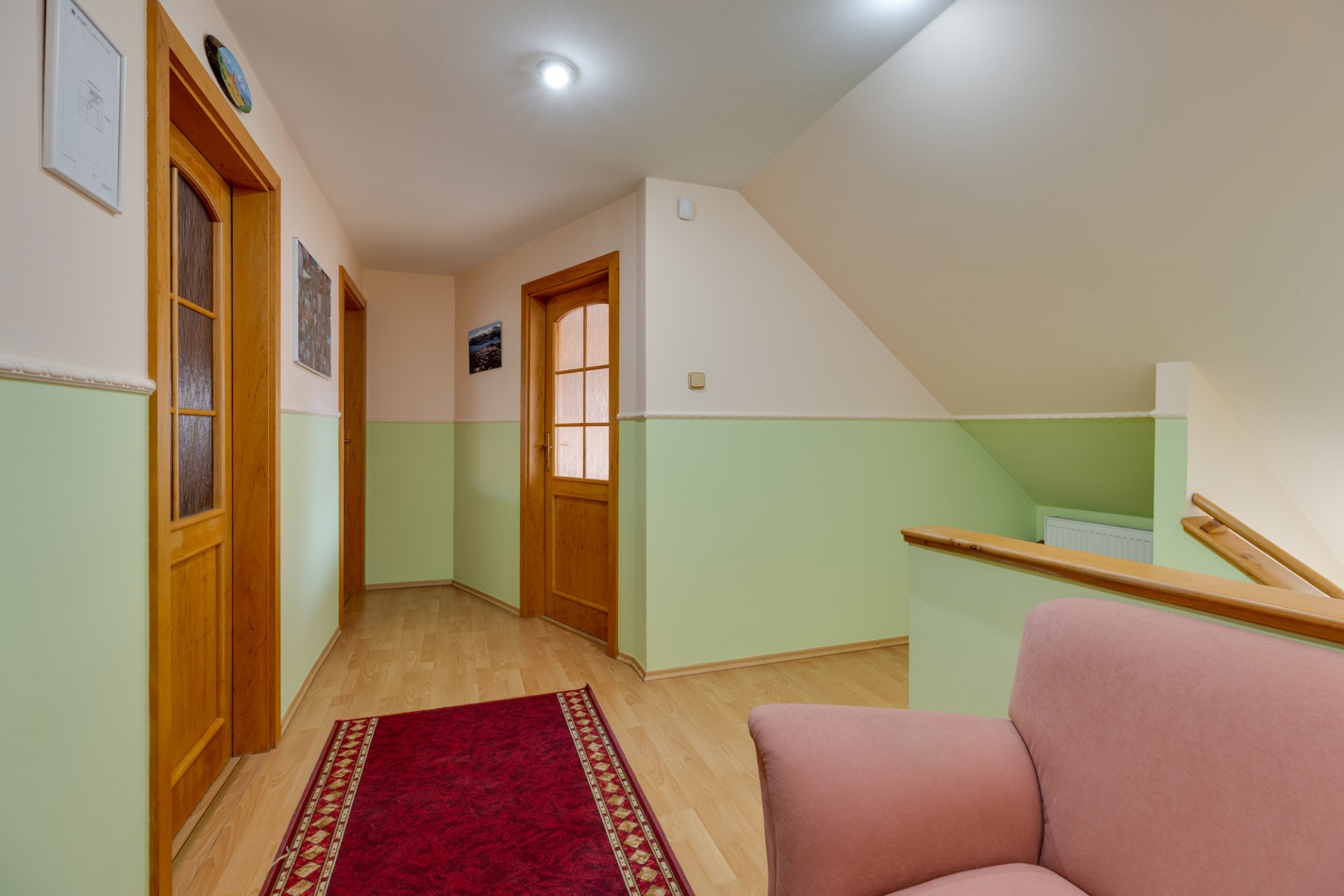 2.nadzemné podlažie - kuchyňa so schodiskom, obývacia izba, kúpeľňa s WC a 3 x izba / kancelárie - celková plocha 98,98 m2