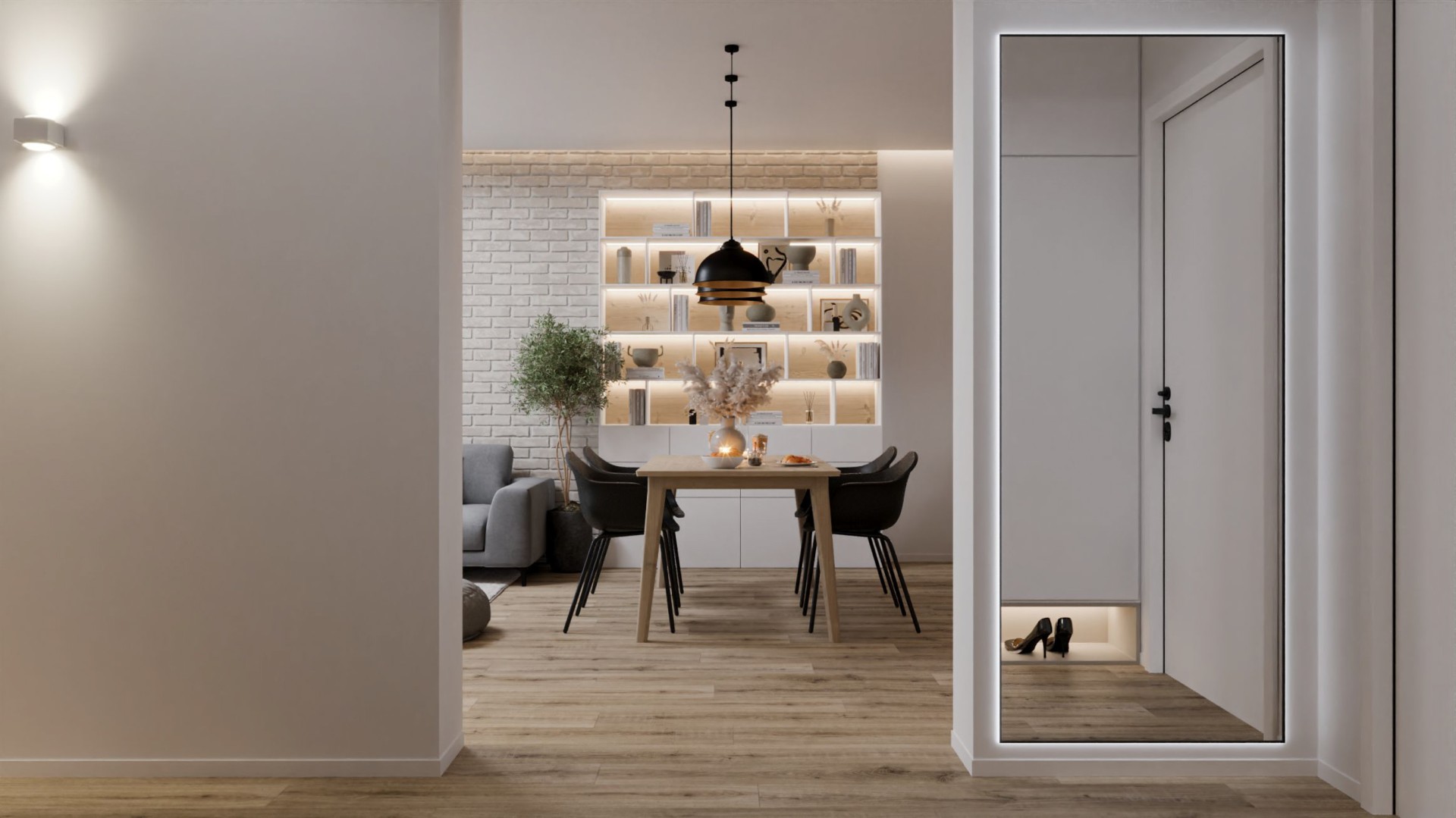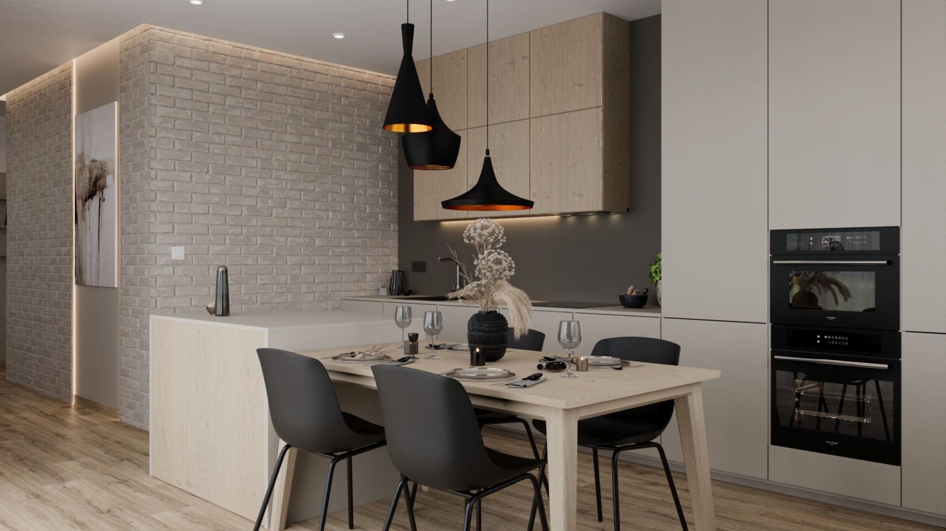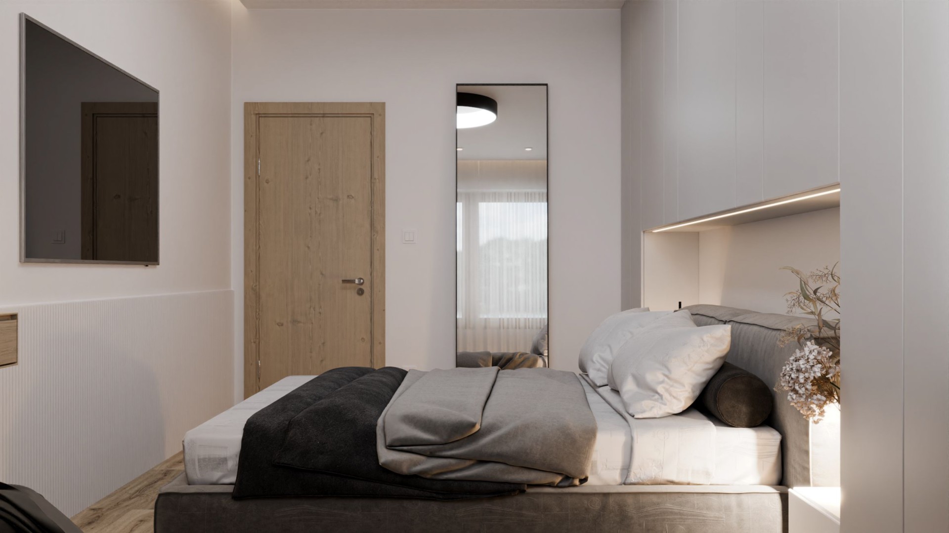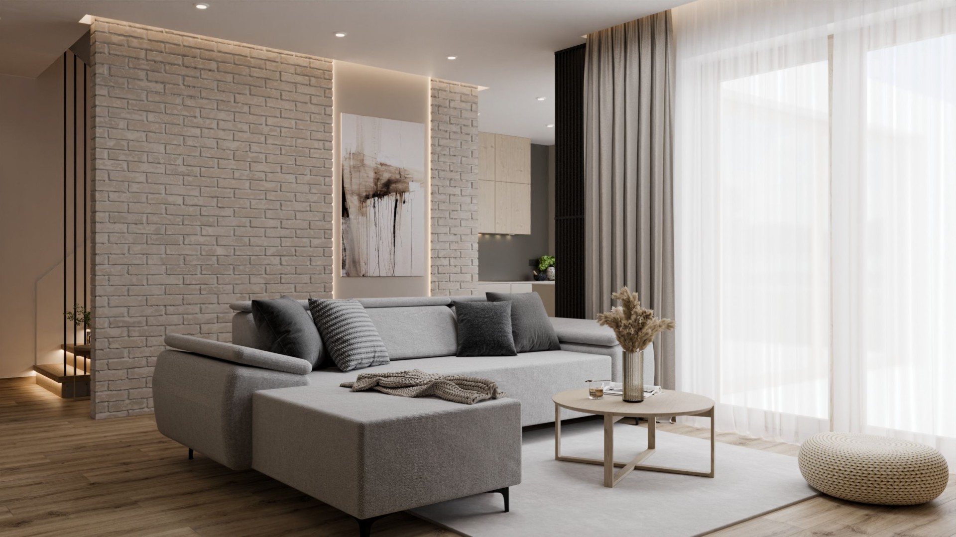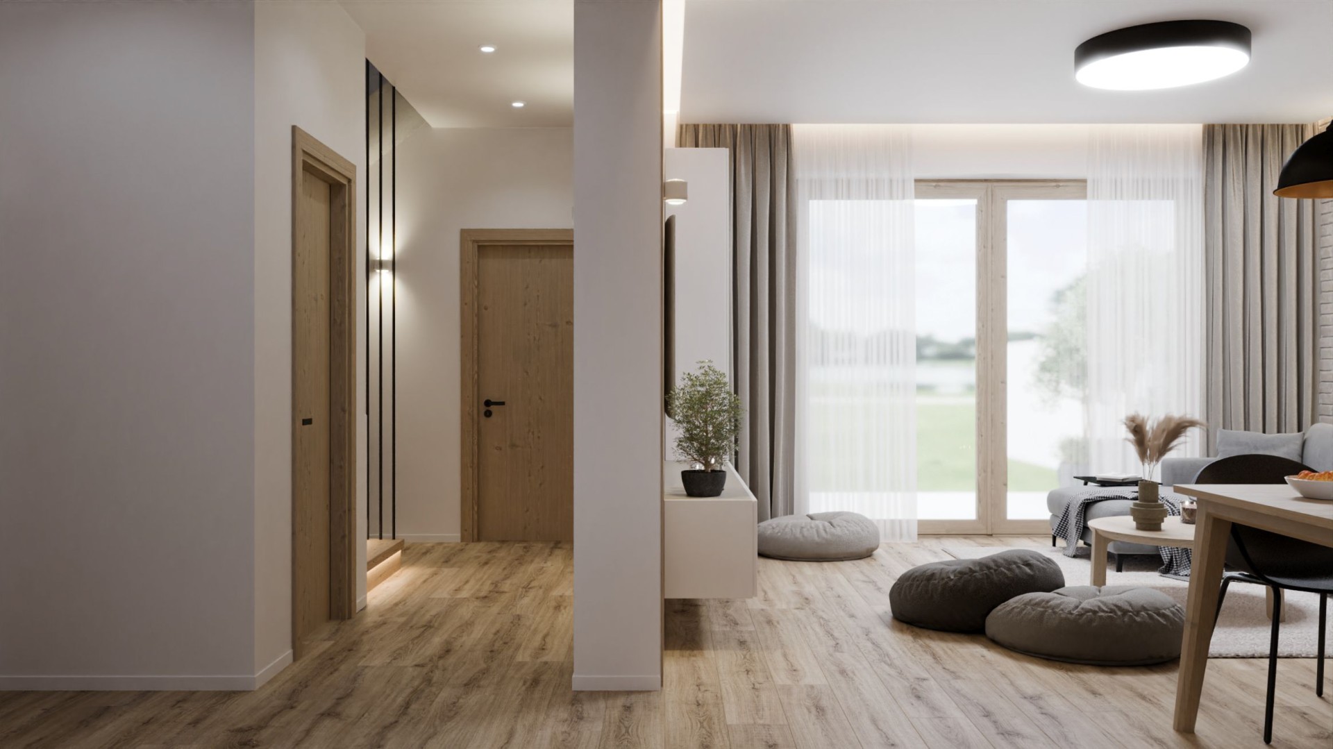 Dispozícia domu je navrhnutá tak, aby v nej našiel každý člen rodiny svoje miesto. Denná časť s kuchyňou a obývačkou prirodzene prechádza do záhrady, čím vzniká vzdušný priestor plný svetla a pohody. Nočná časť rodičov ponúka súkromie, zatiaľ čo deti majú na poschodí vlastný priestor so samostatnou kúpeľňou a toaletou. Praktické riešenia sa tu snúbia s premysleným usporiadaním – dom má dostatok úložného priestoru a každé jeho zákutie má svoj význam.