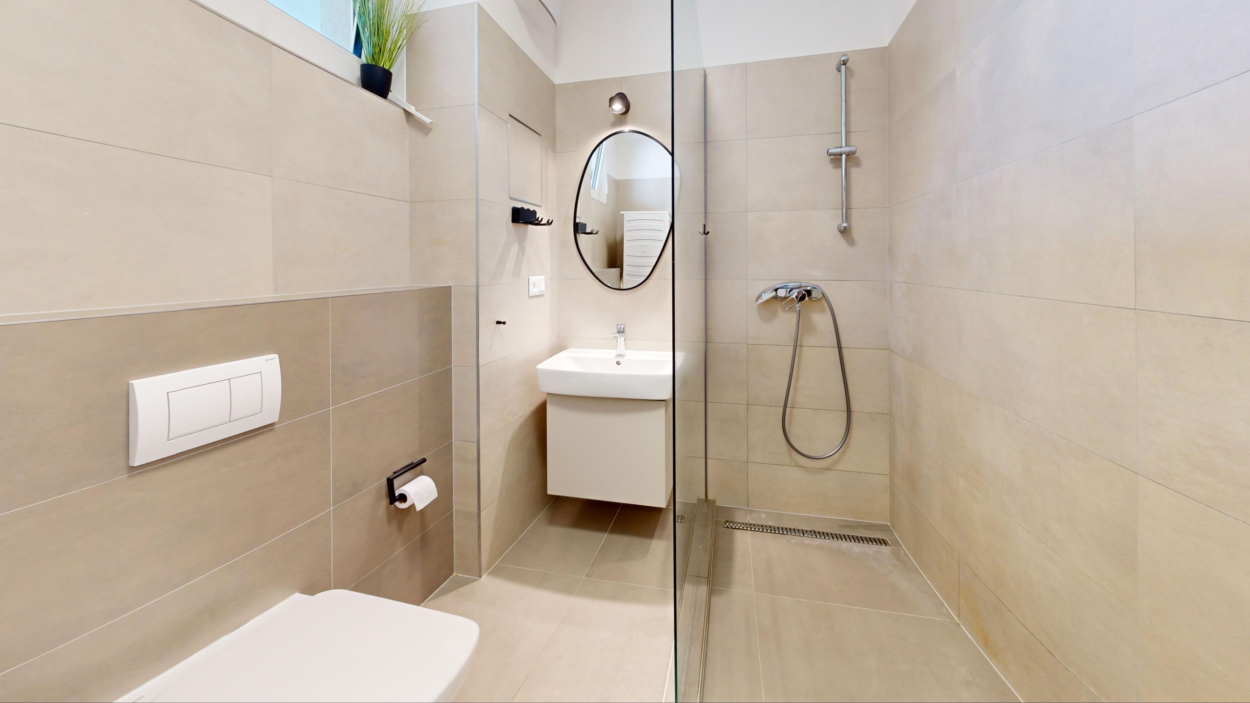 – kúpeľňa so sprchovým kútom a WC, práčka a sušička