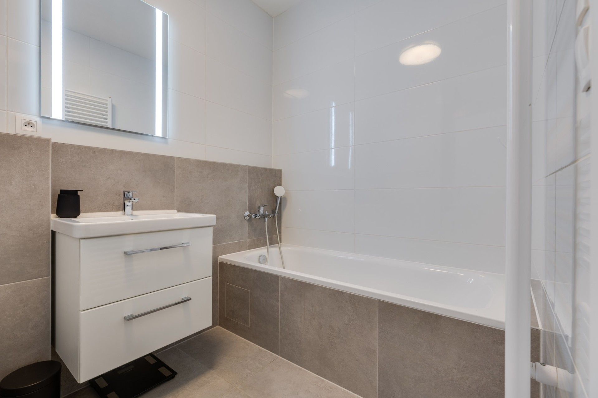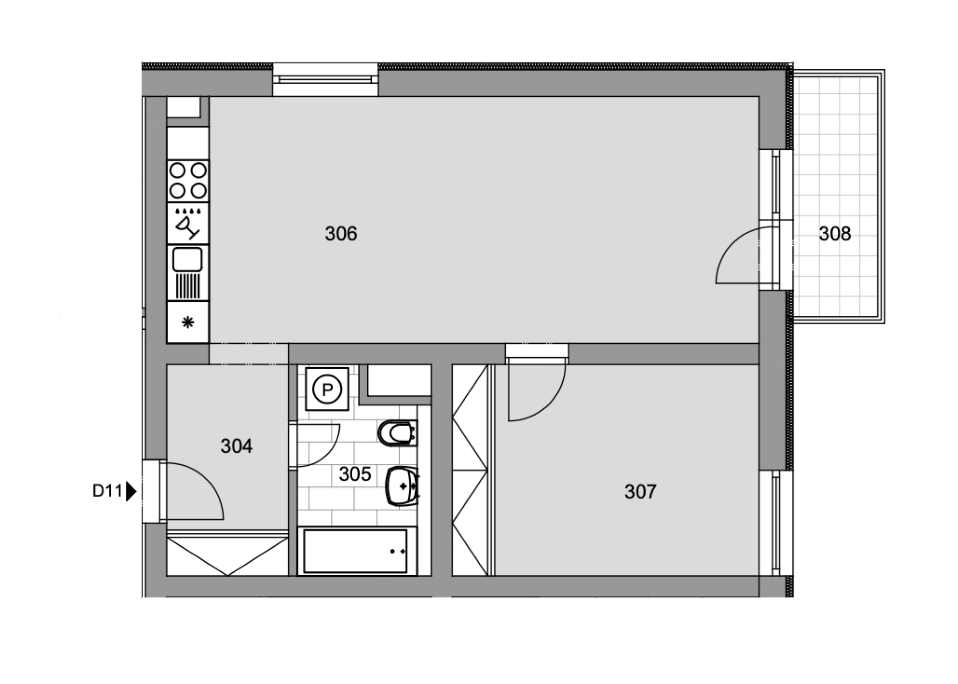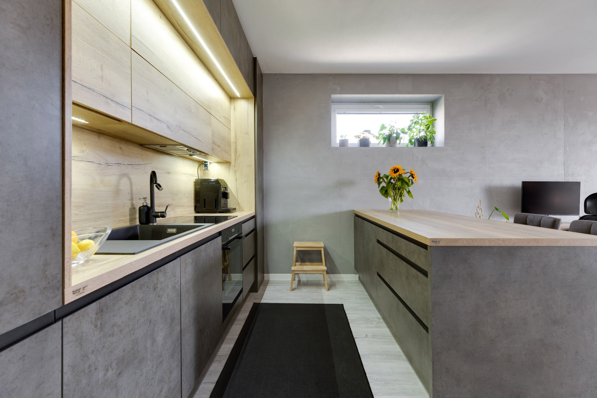 Byt má úžitkovú plochu 54,39 m², k tomu balkón o výmere 4,68 m² a sklad priamo na poschodí 1,2 m². Dominantou bytu je veľkorysá denná časť – obývacia izba s kuchyňou o rozlohe až 30 m², aká sa v dvoch izbových bytoch len zriedka vyskytuje. Celý interiér je ladený v nadčasovom štýle s použitím kvalitných materiálov. Kuchynská linka, vstavané skrine aj TV zostava boli vyrobené stolárom na mieru, pričom použité boli vstavané spotrebiče značky Bosch.