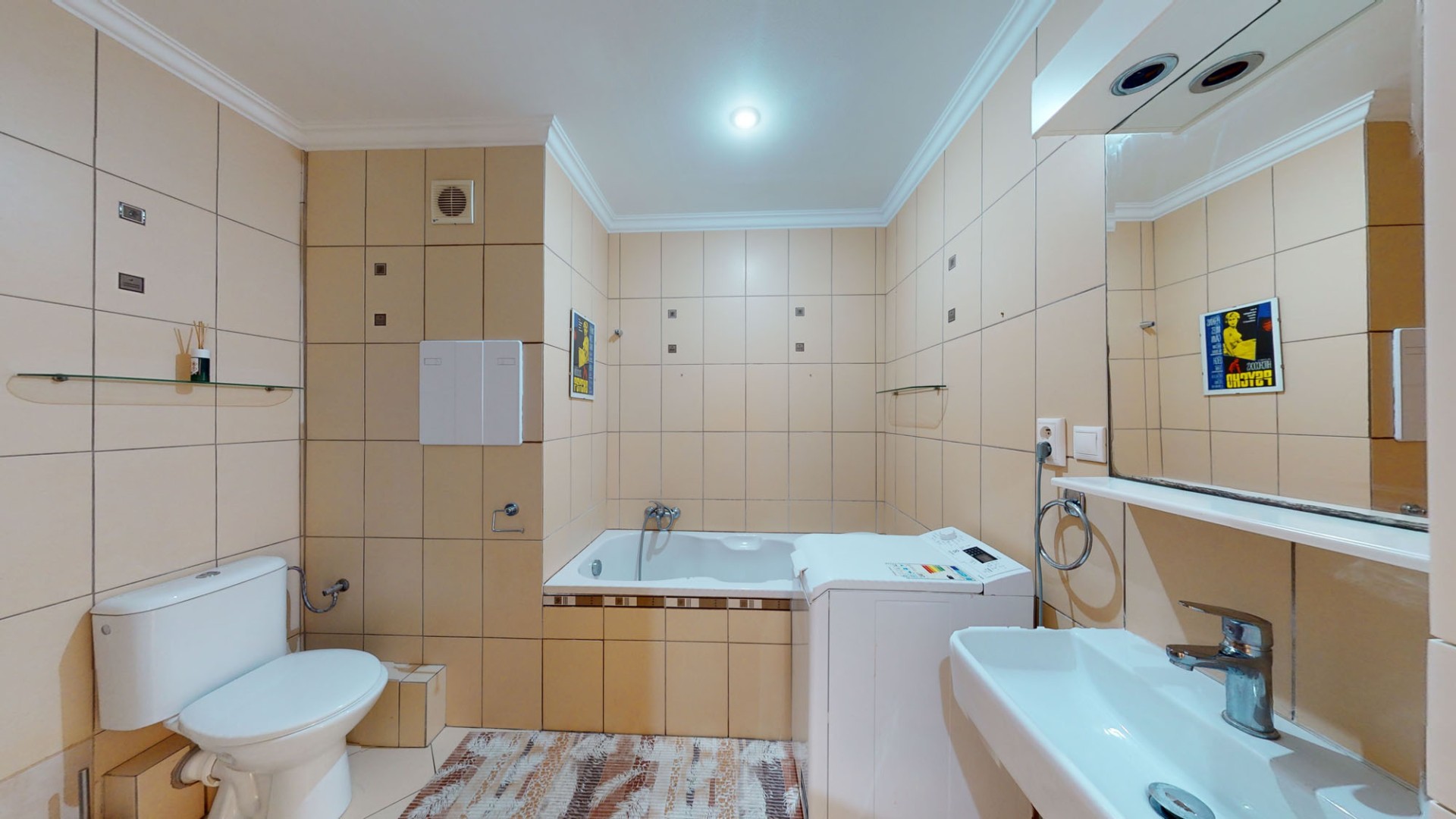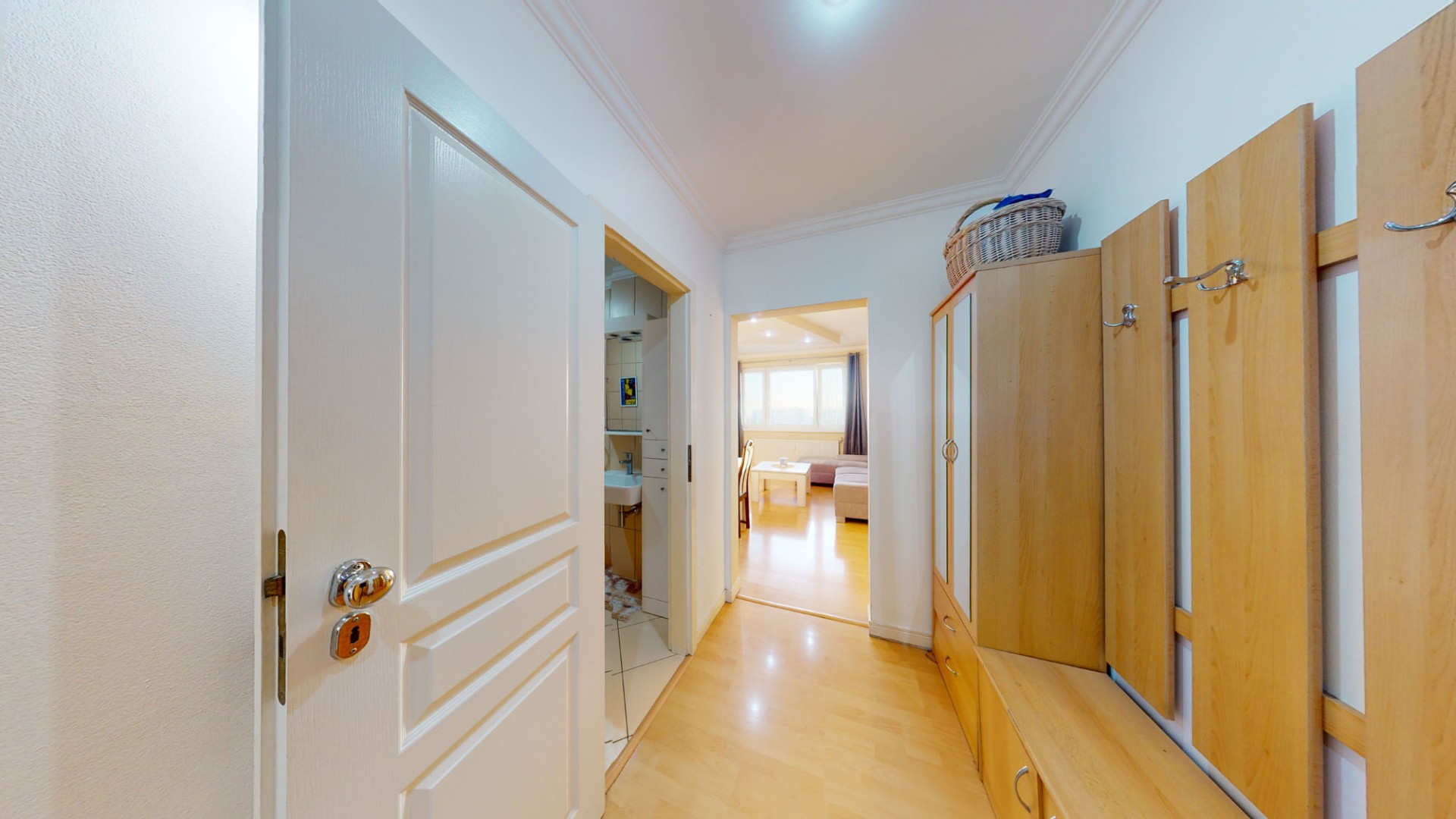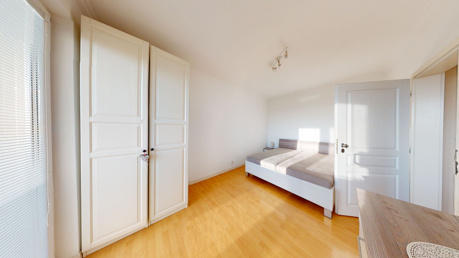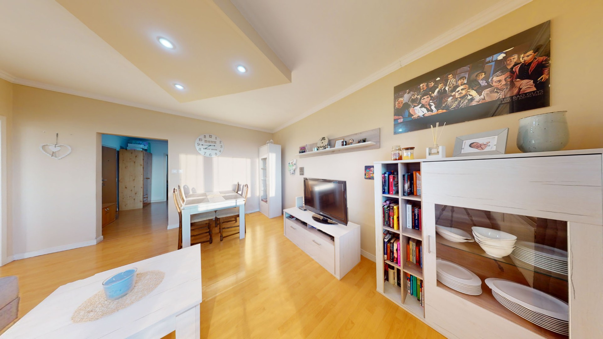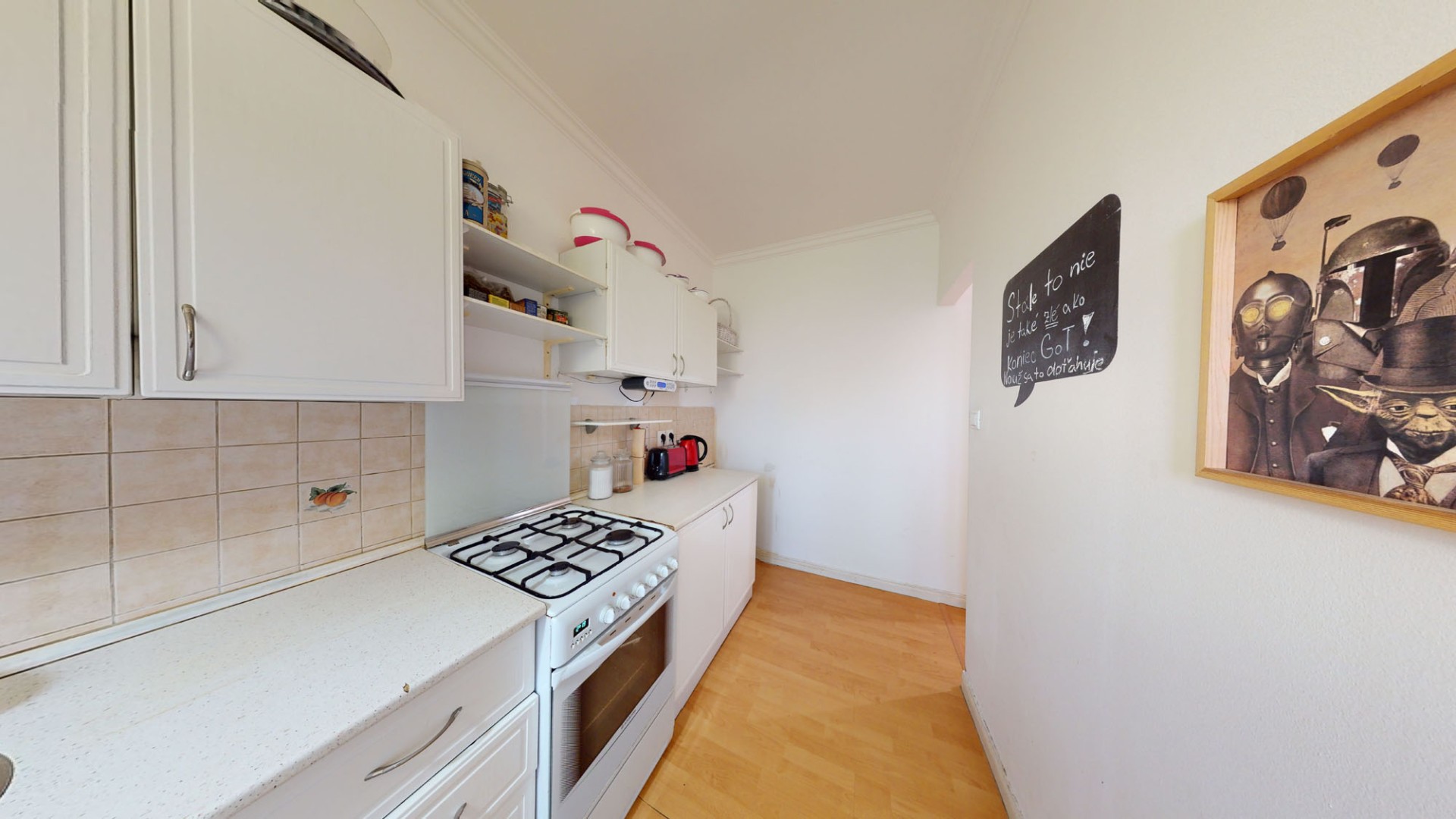 Dispozične byt pozostáva z hlavnej chodby, hneď oproti je kúpeľňa s wc. V kúpeľni je vaňa a predpríprava na sprchový kút. Na jednej strane chodby sa nachádza priestranná obývacia izba s jedálenským kútom a vedľa je spálňa. Zo spálne je vstup na loggiu s pekným výhľadom na veľkú časť Trnavy vďaka vyššiemu podlažiu, na ktorom sa byt nachádza. V ďalšej časti bytu na druhej strane chodby je ďalšia izba a hneď vedľa je kuchyňa. Byt sa predáva zariadený. Bytový dom prešiel kompletnou rekonštrukciou, v rámci ktorej bol aj zateplený.